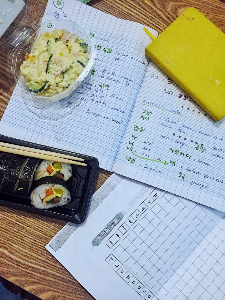 + 35 euros de frais d’inscriptionVoilà crew où nous en sommes… on commence à s’organiser petit à petit, à décider de ce que nous allons faire de nos meubles, envisager les options bancaires qui s’offrent à nous… petit à petit nous avançons… En compléments de cours de coréen j’ai mis M. aux dramas, il est réticent, du coup on y va doucement, 1 épisode tous les dimanche soirs ( ce soir donc ) j’en ferai peut être un article tiens…. en attendant, take care!